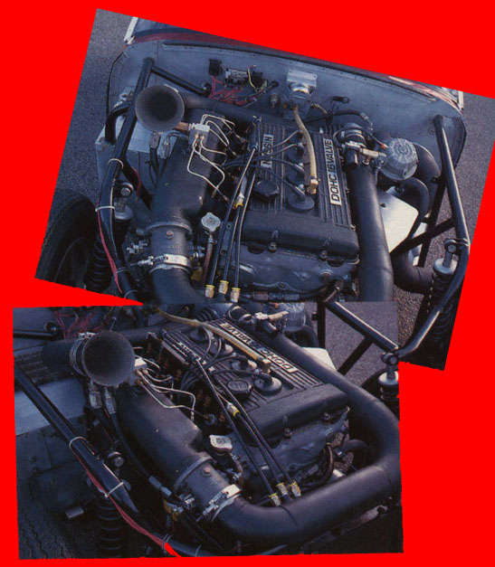 ![]() FJ20ET turbo 1990cc DOHC 16 valve four cylinder. nitrided stock crank, Carrilla rods, Cosworth pistons, aluminium heads, Hilborn fuel injection system, Garret T04 turbocharger set at 30 psi boost, Jeff Watson built custom manifold. Driveline: 2 speed powerglide, 7in. Dominator torque converter, TCI transbrake, Toyota Hi-Ace diff 4.375:1 ring and pinion, custom shortened Hi-Ace axles. Brakes & Suspension: . Performance: 1/4 Mile